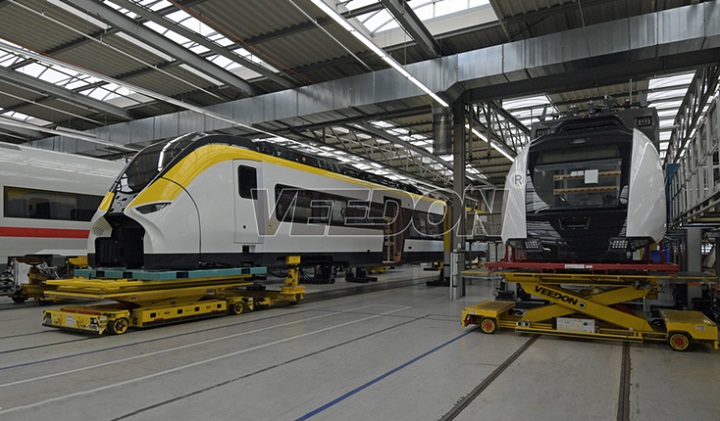 威登剪叉式車底拆裝升降平臺專業(yè)用于軌道車輛制造裝配修時車底設(shè)備和部件拆卸安裝的專用設(shè)備,完全滿足裝配和檢修人員對軌道車輛底部設(shè)備的維修拆卸與安裝。該產(chǎn)品額定承載量大,裝置主要結(jié)構(gòu)為電動液壓驅(qū)動的升降支架及平臺,具有無級調(diào)速舉升和自行走功能,行走輪為液壓四輪驅(qū)動90°同步角度控制,車底設(shè)備拆裝裝置作業(yè)時可橫向、縱向連續(xù)移動。設(shè)備的平臺可橫向、縱向平移和順時針、逆時針方向旋轉(zhuǎn)浮動。電源可選擇交流、直流。輪系可公鐵兩用。電源:蓄電池供電,DC48V,充電電源要求:AC380V/50Hz,環(huán)境溫度:-5~+45°C,相對濕度:≤95%,海拔高度:≤1200m,前后左右萬向行駛,可選遙控或者線控,快速慢速可切換,平臺上升下降,平臺可旋轉(zhuǎn),可浮動微調(diào),可選裝平臺護(hù)欄,可選顏色,該產(chǎn)品可根據(jù)實(shí)際需求訂做任何高度