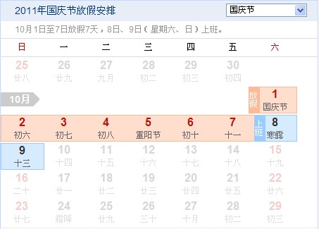 根據(jù)國(guó)務(wù)院辦公廳通知,今年國(guó)慶節(jié)放假安排如下: