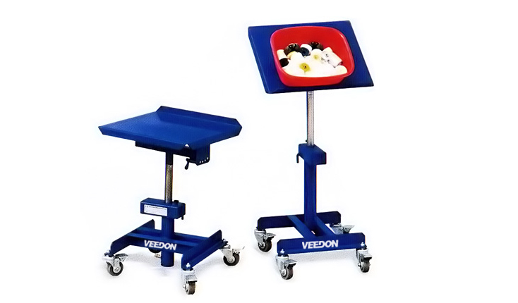 四個轉(zhuǎn)向輪確保作業(yè)定位裝置達(dá)到最佳靈活性。配全剎腳輪固定臺車。