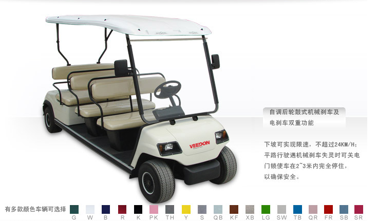 威登GC-6電動高爾夫球車性能穩(wěn)定、操控輕便是威登GC-6電動高爾夫球車的最大特點。威登GC-6電動高爾夫球車在全球范圍內(nèi)擁有大量的客戶。從高爾夫球場、別墅、酒店、學校到私人用戶,威登GC-6電動高爾夫球車都將是您最便捷的短途交通工具。